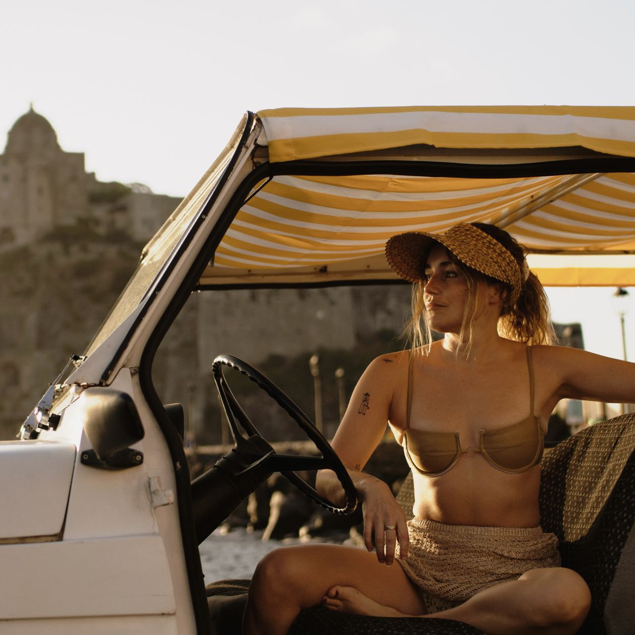 Ari Sand works as a beach visor when you want shade without flattening your hair. Wear it with: