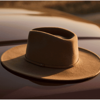 Will & Bear William Oak light brown crushable travel hat made from sustainable wool with classic fedora shape.